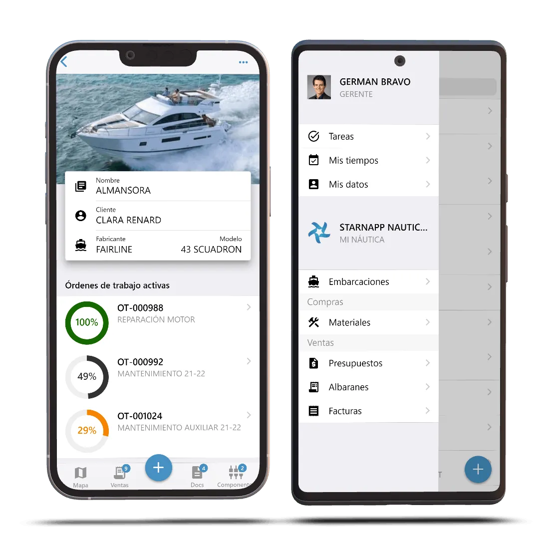 Start nowA Nautical company requires managing many tasks at the same time: moorings, repairs, stock, billing, purchases... Do you sometimes have the feeling that you are wasting your time on totally unproductive tasks? Do you want to improve and accelerate communications with your customers and suppliers? Do you think there are many tasks that you could automate? So have we and, for this reason, we have created StarNapp, the ERP software specialized in the nautical sector.